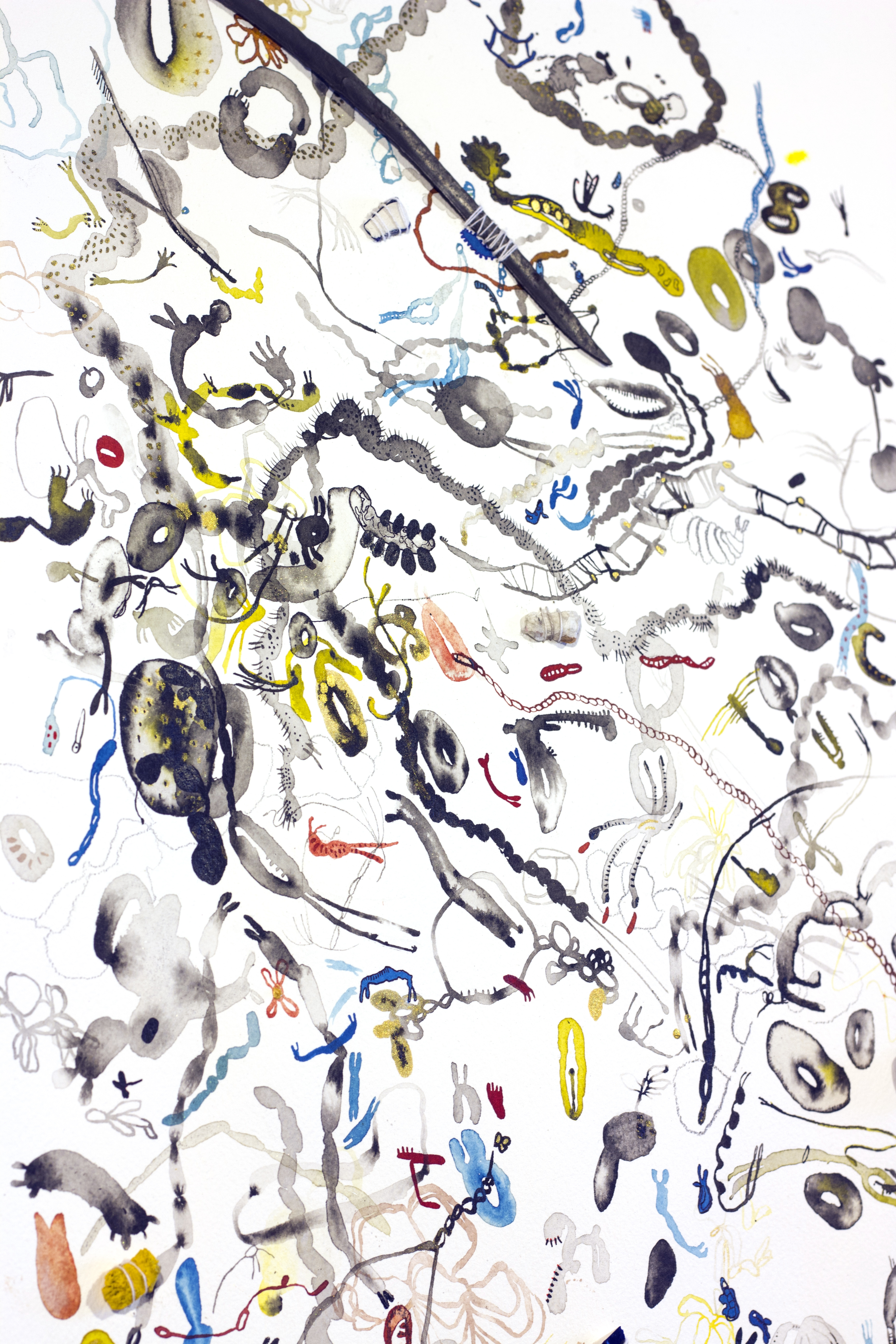 Spider Through Drip MountainCharcoal, ink, crayon, chalk, acrylic paint on paper